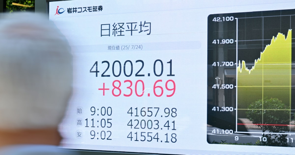 日経平均株価、一時4万2000円台 米国の関税交渉進展に期待
