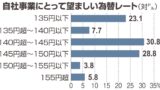 このうち「140円超~145円」との回答は全体の3割強、「145円超~150円」は3割弱をそれぞれ占めた。