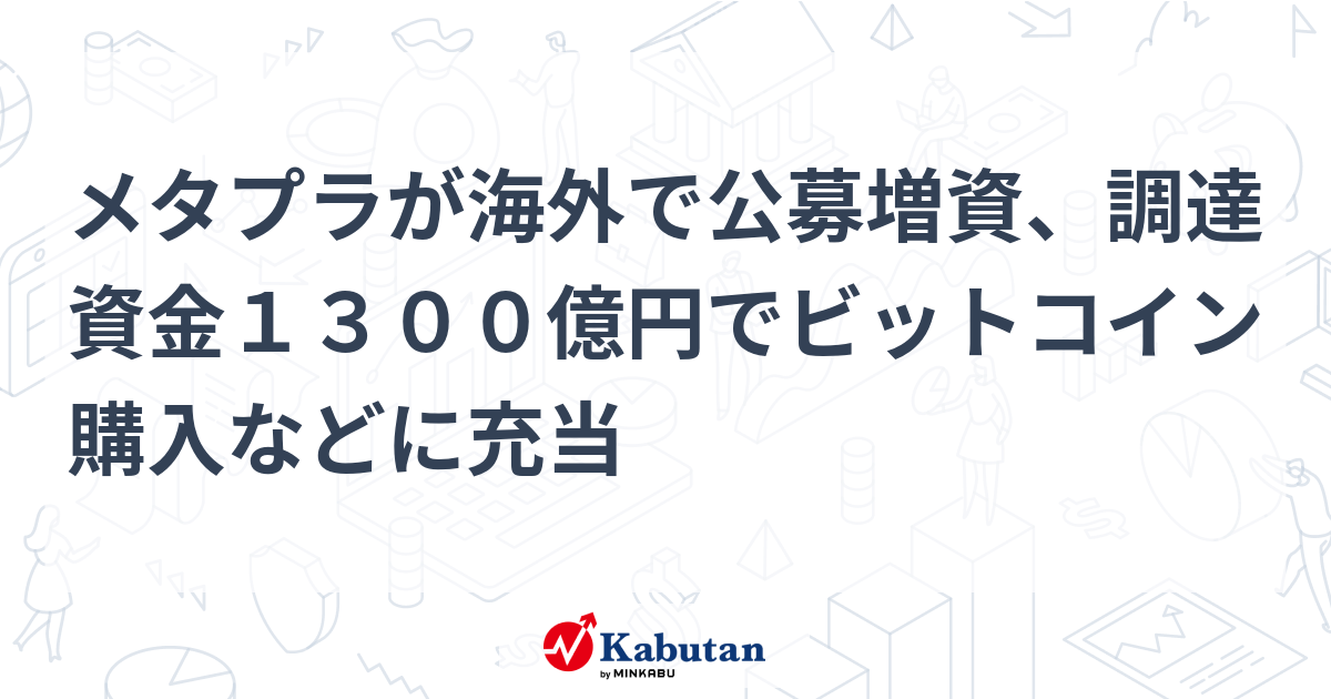 メタプラが海外で公募増資、調達資金1300億円でビットコイン購入などに充当